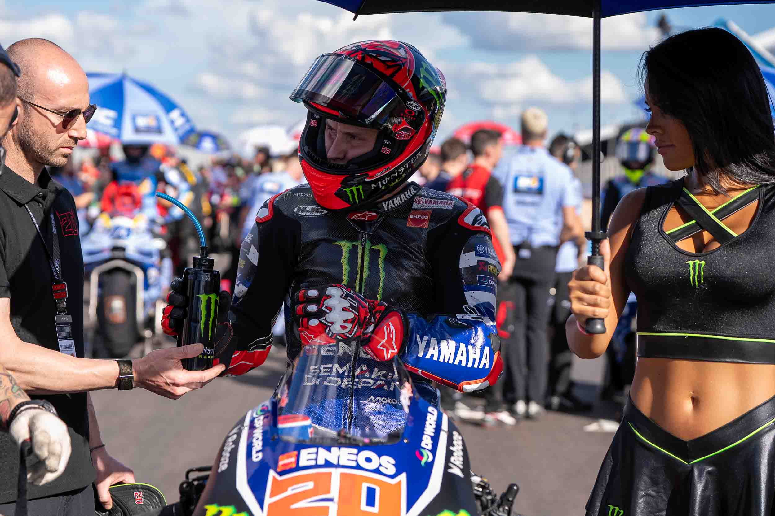 Monster Energy Yamaha MotoGP had to be patient for the start of today's Grand Prix of Brazil Sprint, but once the 15-lap contest got underway, Fabio Quartararo was pushing to the limit, riding to an encouraging P6 finish. Álex Rins also kept his head down during the Sprint and made use of a last-lap flurry of activity just ahead of him to snatch P13 at the finish line.